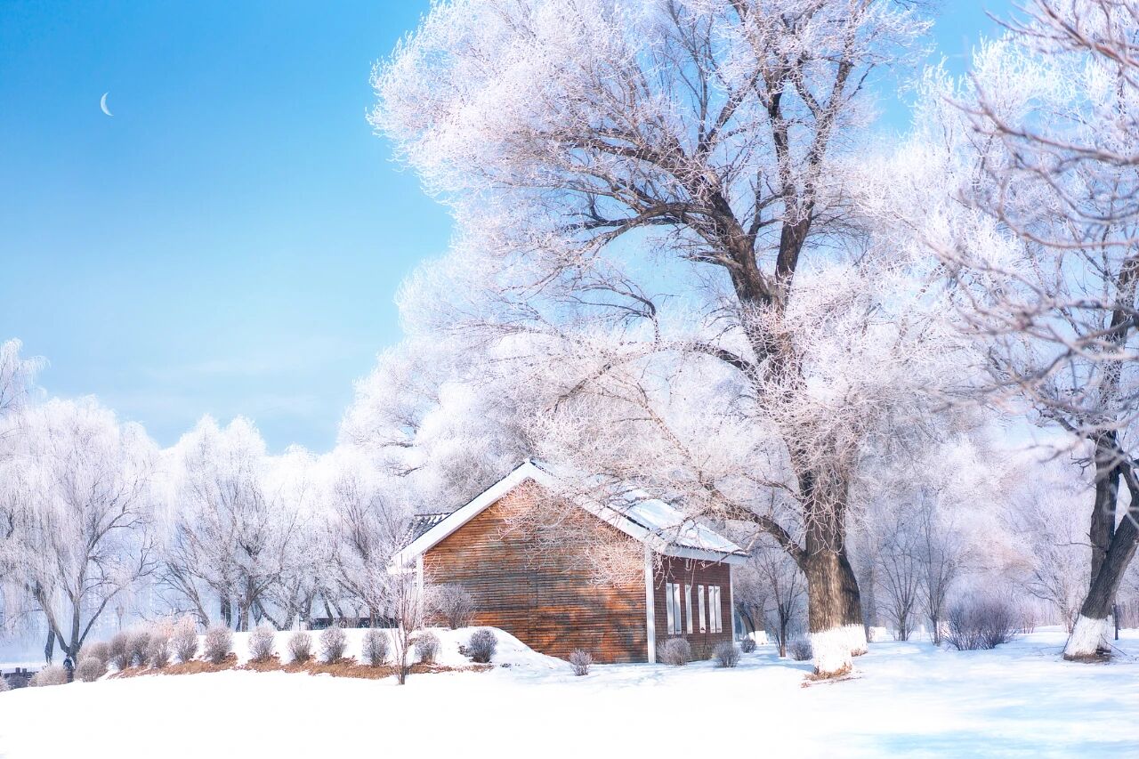雾凇的形成条件十分苛刻,需要气温低于零下15摄氏度,空气湿度充足,风力微弱。它大多在清晨凝结成形,中午逐渐消散。冰晶挂满枝头的雾凇景象,仿佛童话世界一般,也是中国四大自然奇观之一。